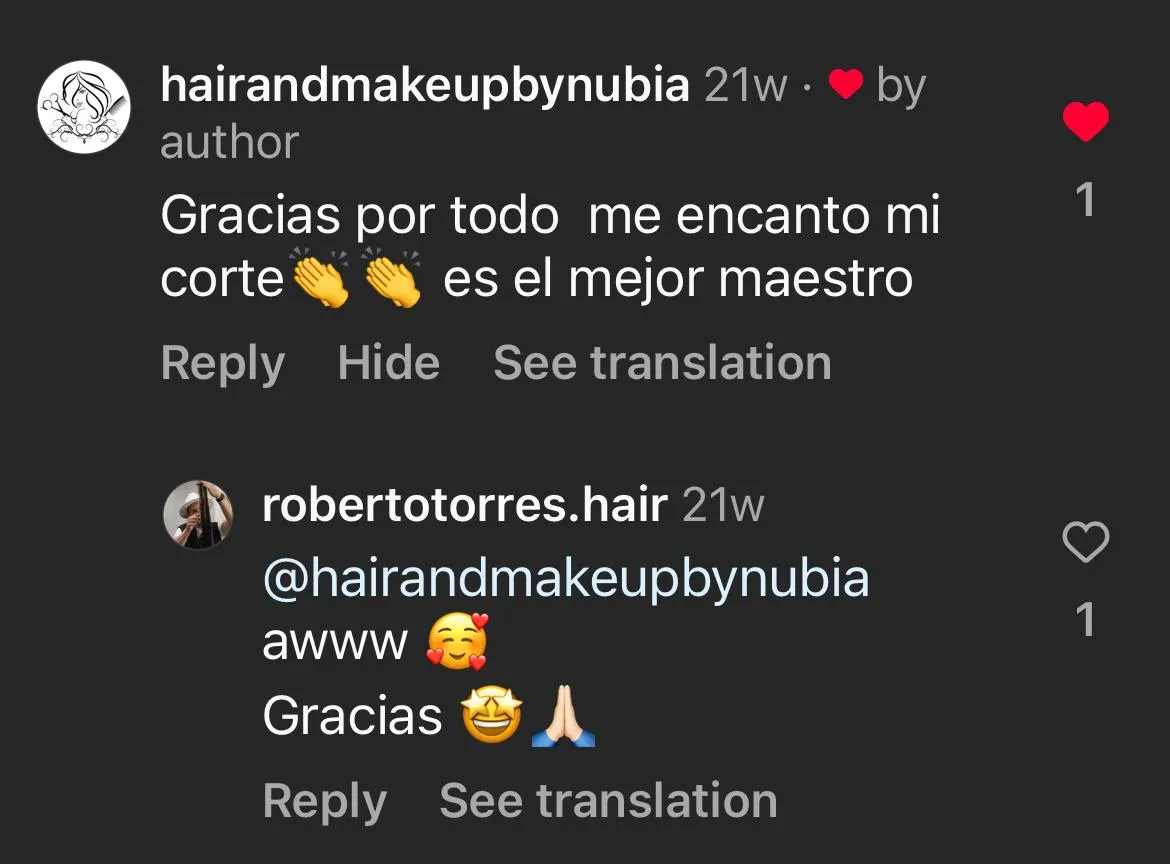 ¡Roberto fue increíblemente profesional! Se tomó el tiempo para ver la condición de mi cabello, preguntar lo que quería y explicar lo que sería mejor para mi tipo de cabello. ¡Mi color y corte son fenomenales! No había